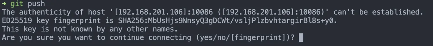 @@@@@@@@@@@@@@@@@@@@@@@@@@@@@@@@@@@@@@@@@@@@@@@@@@@@@@@@@@@ @ WARNING: REMOTE HOST IDENTIFICATION HAS CHANGED! @ @@@@@@@@@@@@@@@@@@@@@@@@@@@@@@@@@@@@@@@@@@@@@@@@@@@@@@@@@@@ IT IS POSSIBLE THAT SOMEONE IS DOING SOMETHING NASTY! Someone could be eavesdropping on you right now (man-in-the-middle attack)! It is also possible that a host key has just been changed. The fingerprint for the ED25519 key sent by the remote host is SHA256:MbUsHjs9NnsyQ3gDCWt/vsljPlzbvhtargirBl8s+y0. Please contact your system administrator. Add correct host key in /Users/cooper/.ssh/known_hosts to get rid of this message. Offending ECDSA key in /Users/cooper/.ssh/known_hosts:8 Host key for [192.168.201.106]:10086 has changed and you have requested strict checking. Host key verification failed. 致命错误:无法读取远程仓库。 请确认您有正确的访问权限并且仓库存在。