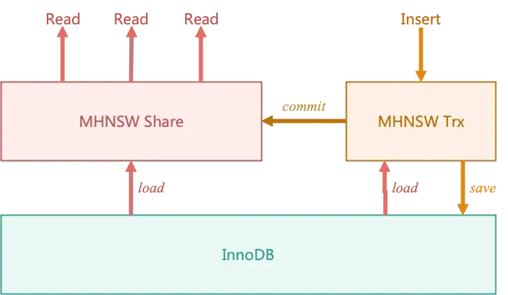 - 【公共缓存】MHNSW Share 供只读事务访问,挂载于辅助表的 TABLE_SHARE 上。其核心目标是通过共享缓存减少重复加载向量节点的开销,提升查询效率。