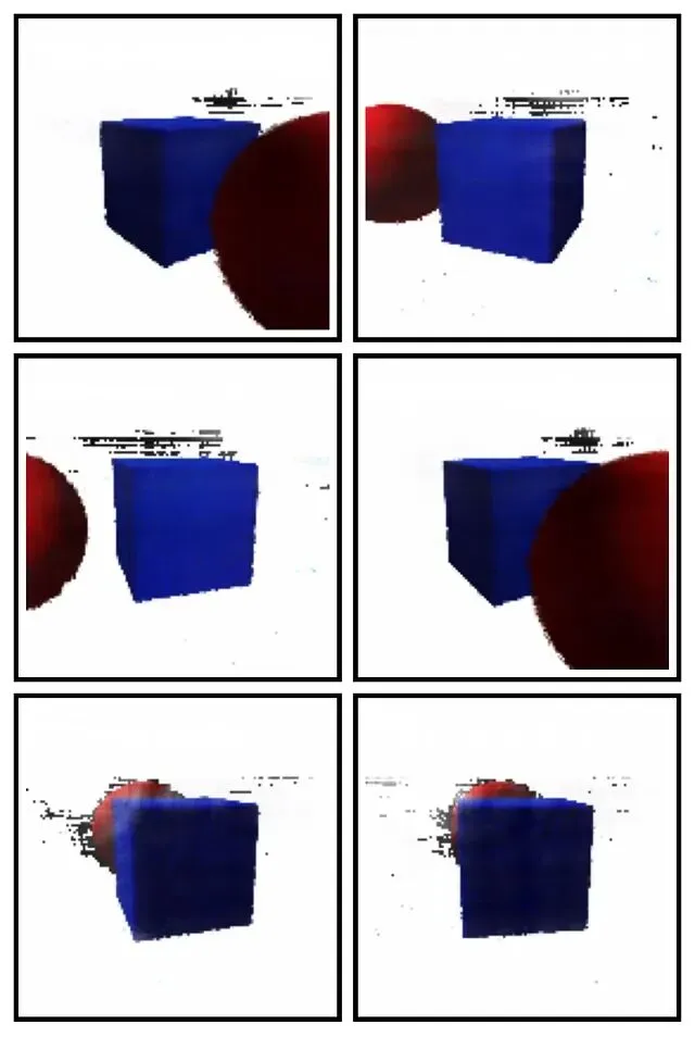 接下来从零实现NeRF架构,在一个包含蓝色立方体和红色球体的简单数据集上训练。