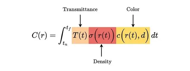 光线的期望颜色C(r)定义如下,沿光线从近到远积分: