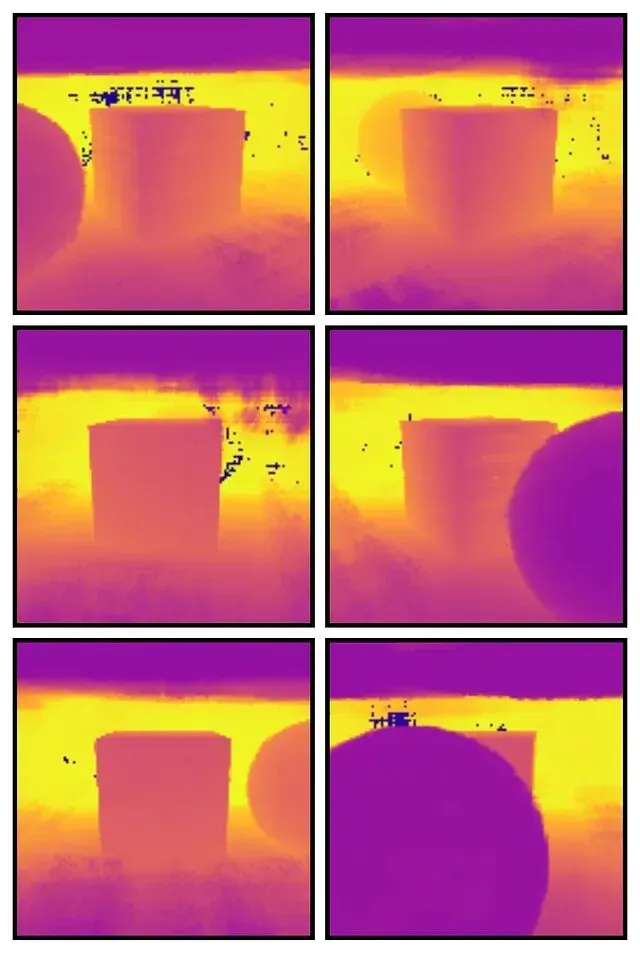 立方体的平面捕捉得相当准确没有幽灵表面。空旷区域有些斑点噪声说明虽然空白区域整体学得还行,但稀疏性还是带来了一些小误差。