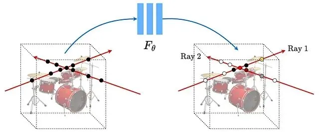 均匀采样的问题在于大量计算浪费在空旷区域。分层采样的思路是训练两个网络,一个粗糙一个精细。