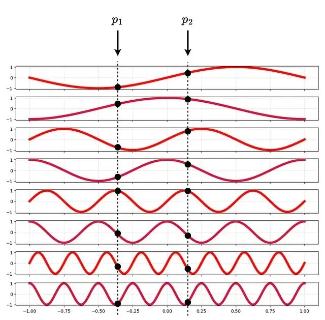 γ对每个坐标分别应用,是个确定性函数没有可学习参数。p归一化到[-1,+1]。L=4时的编码可视化: