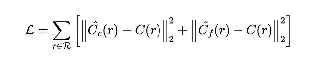 先用粗糙网络采样评估一批点,再根据结果用逆变换采样在重要区域加密采样。精细网络用两组样本一起计算最终颜色。粗糙网络的颜色可以写成采样颜色的加权和。