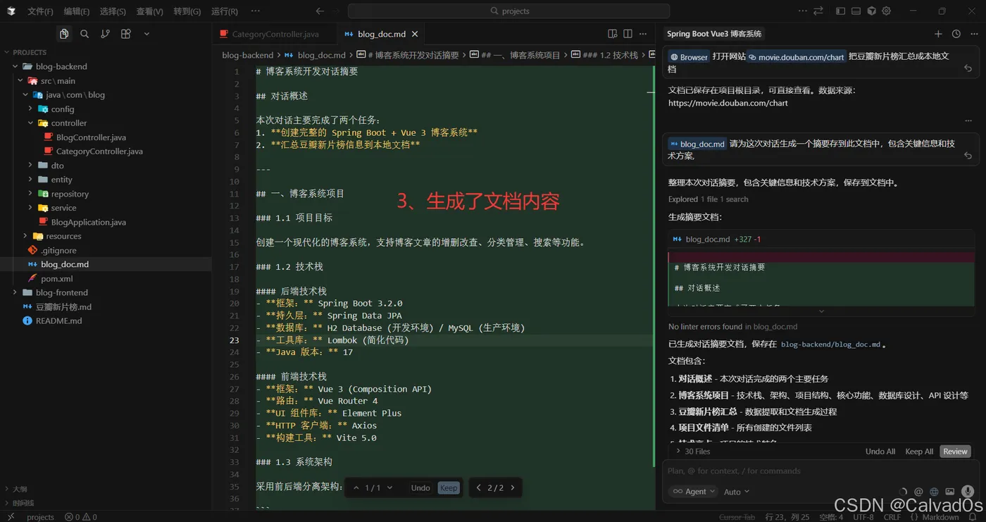 - 新对话引用文档:在新对话中使用@引用这个摘要文档,继续往下开发