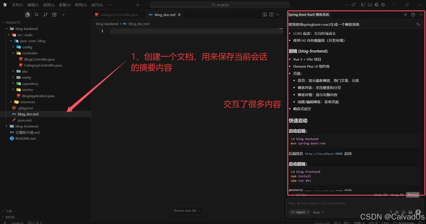 - 生成摘要文档:让AI编辑器生成当前会话的摘要,形成文档存储