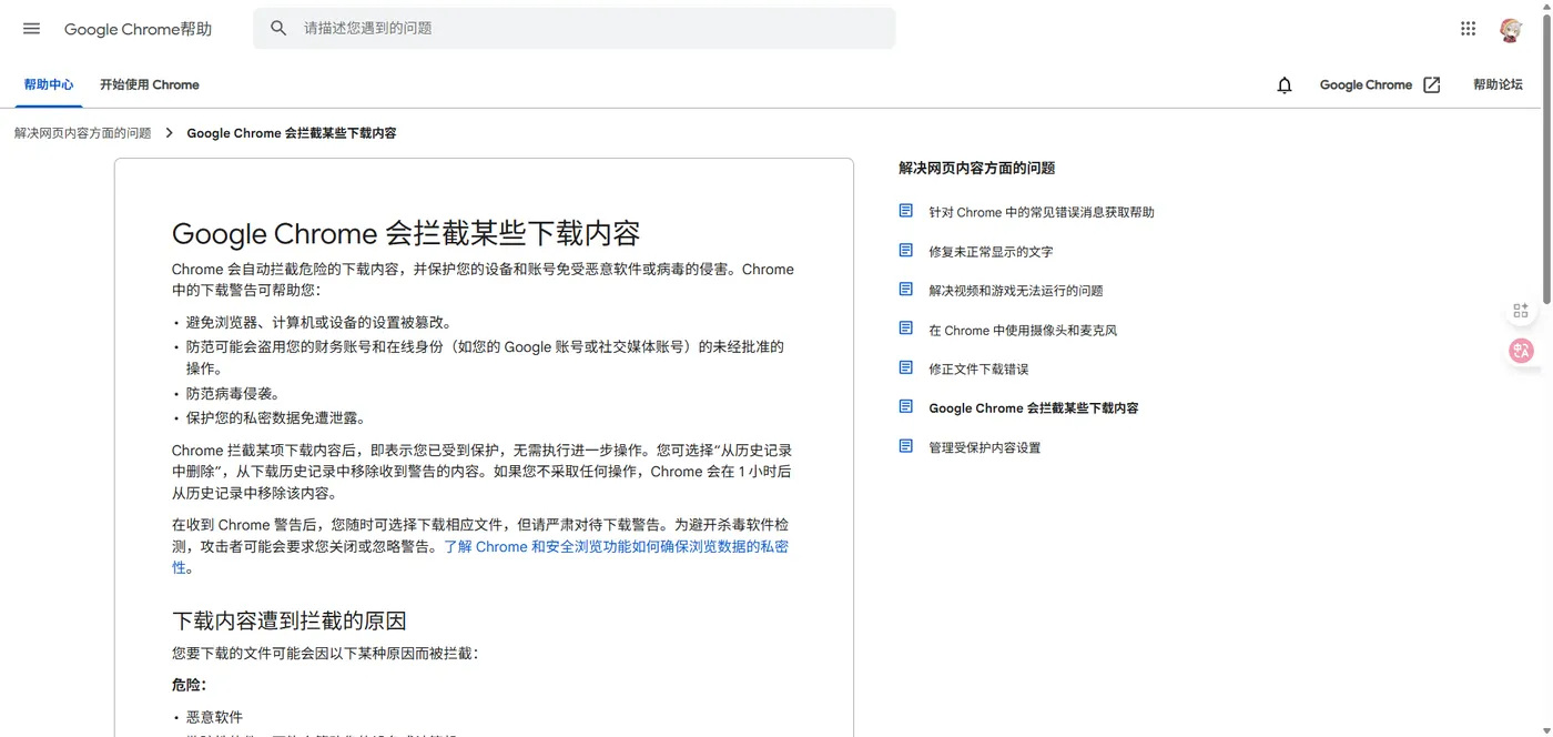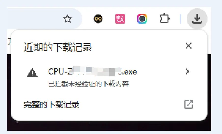 这是 Chrome 的安全检测机制判定该下载链接或文件存在风险,从而拦截了下载。