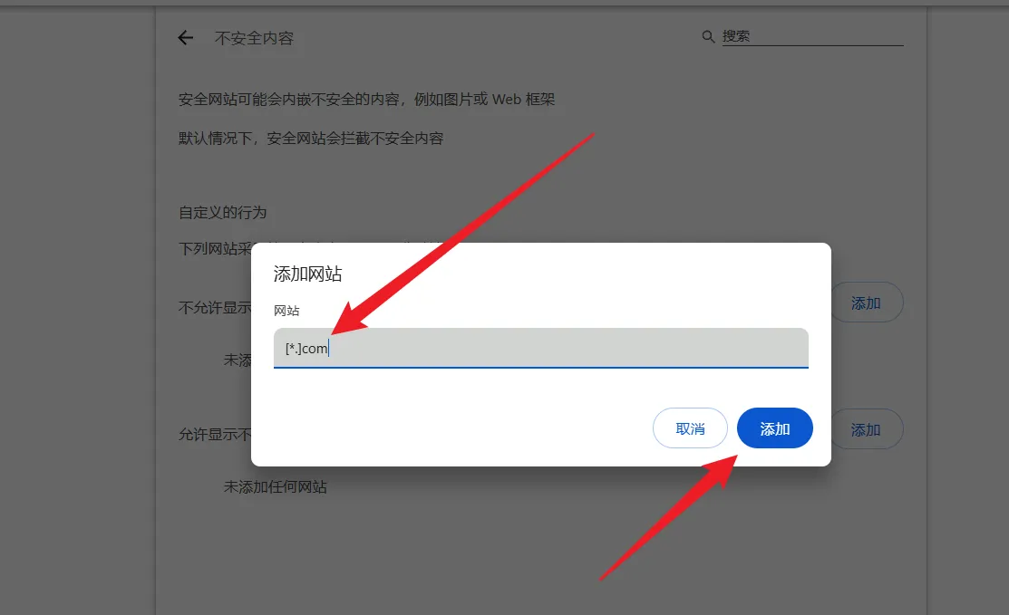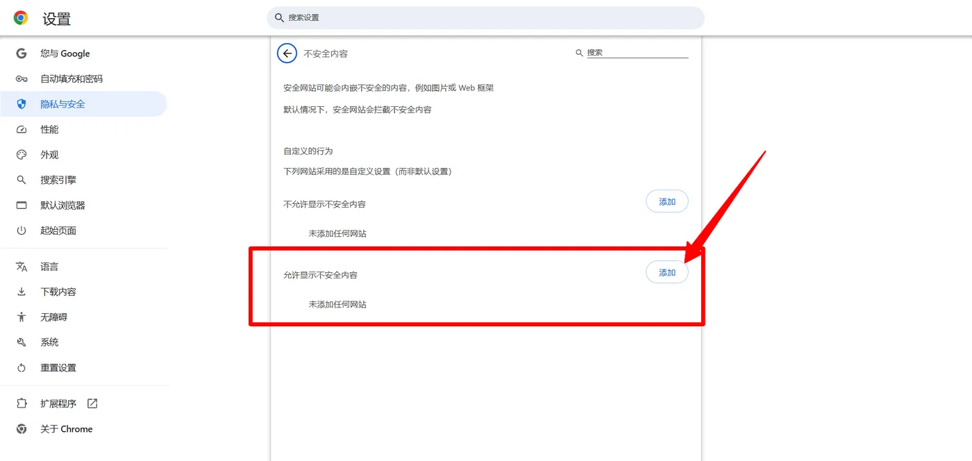 找到允许显示不安全内容