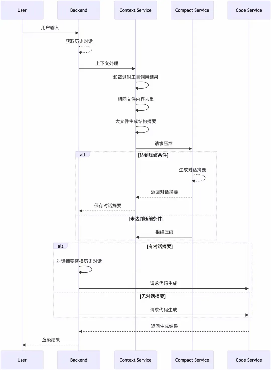 因此,我们为 CodeGenius 设计了一套能够根据上下文状态动态触发的对话摘要机制,用于在关键时刻“折叠历史”,确保 Agent 始终在可控范围内运行。