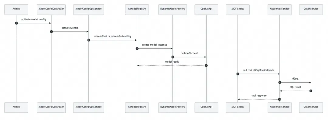 McpServerService提供 NL2SQL 与 Agent 列表工具,使用 Mcp Server Boot Starter。 - 多模型调度: