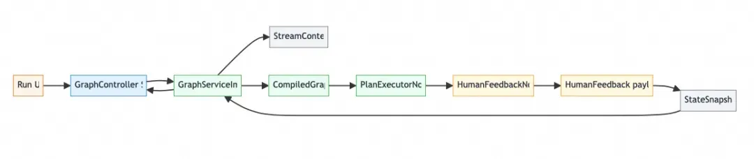 PlanExecutorNode检测HUMAN_REVIEW_ENABLED,转入HumanFeedbackNode。 - 暂停与恢复: