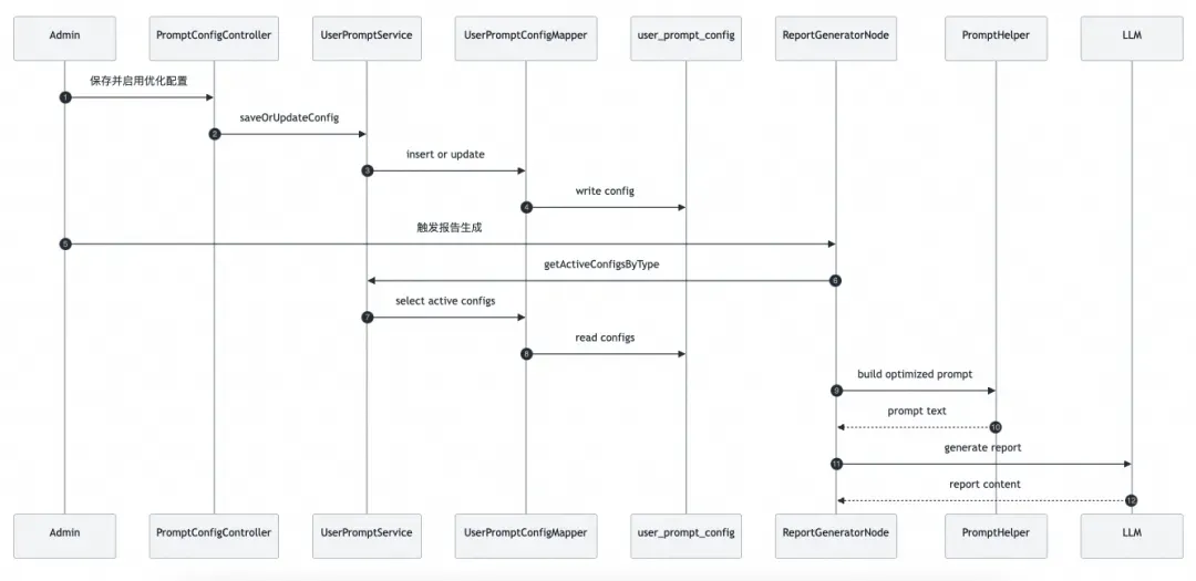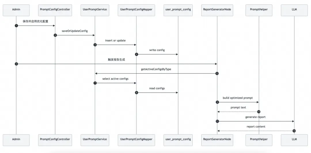 通过PromptHelper.buildReportGeneratorPromptWithOptimization拼接“优化要求”。 - 当前实现重点:报告生成节点已落地优化;其他类型为预留能力。