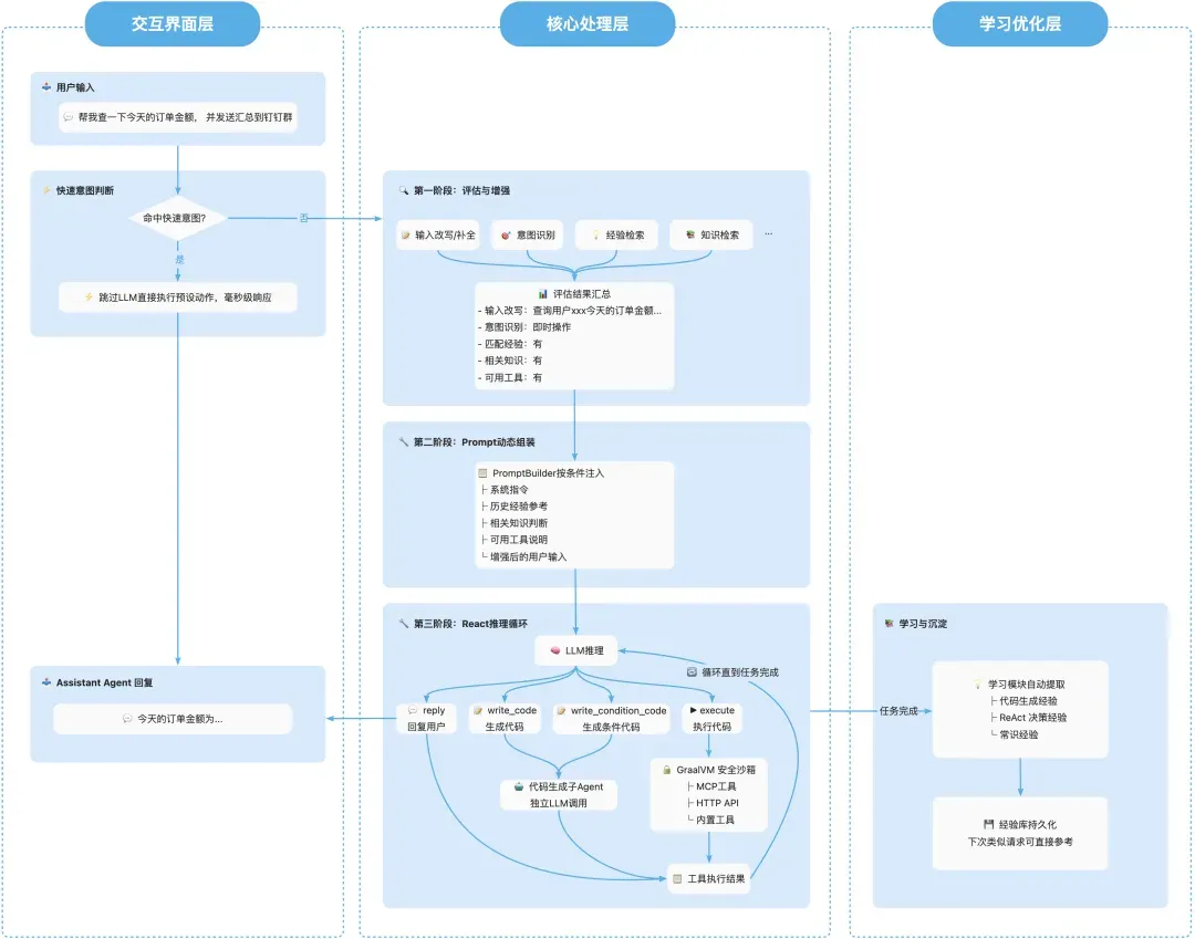 以下是 Assistant Agent 处理一个完整请求的端到端流程示例: