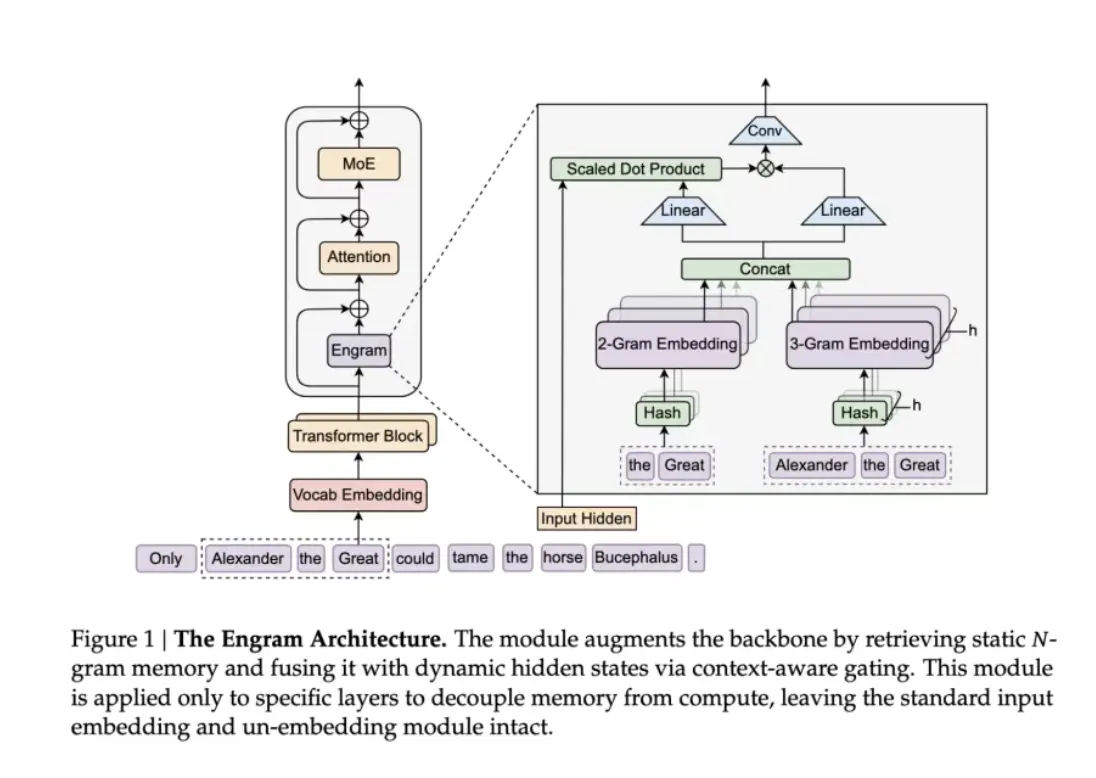 具体来说,Engram 做了三件事:
