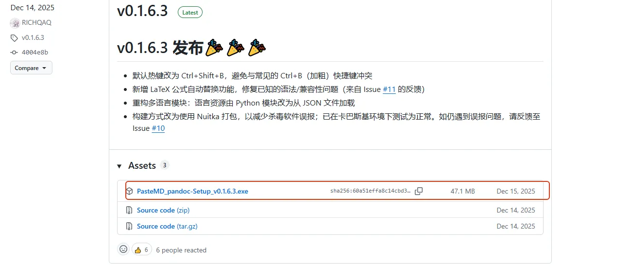 - 下载可执行文件(Releases 页面:https://github.com/RICHQAQ/PasteMD/releases/),之后点击安装即可。