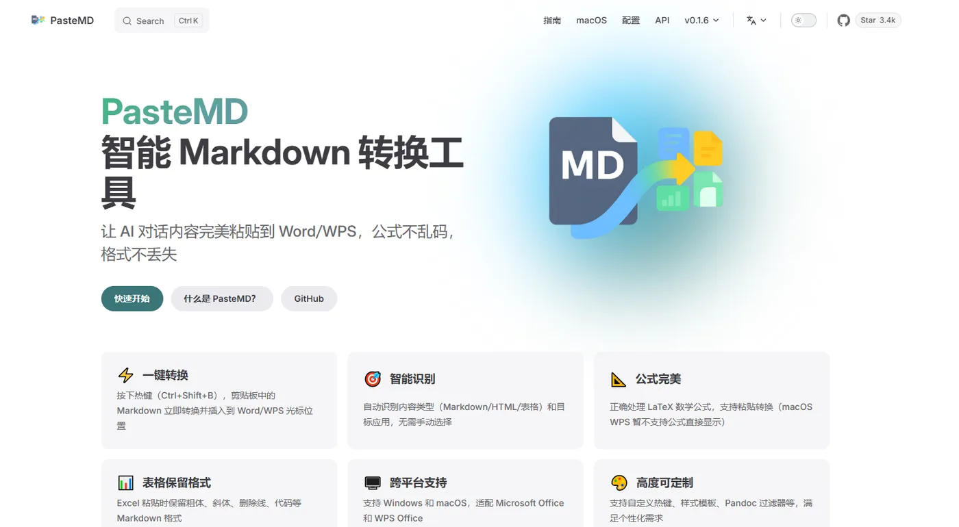 PasteMD是一个常驻系统托盘的小工具,它做了一件看似简单却极其实用的事情:从剪贴板读取Markdown或网页内容,智能转换为Office文档格式,并自动插入到Word/WPS或Excel中。