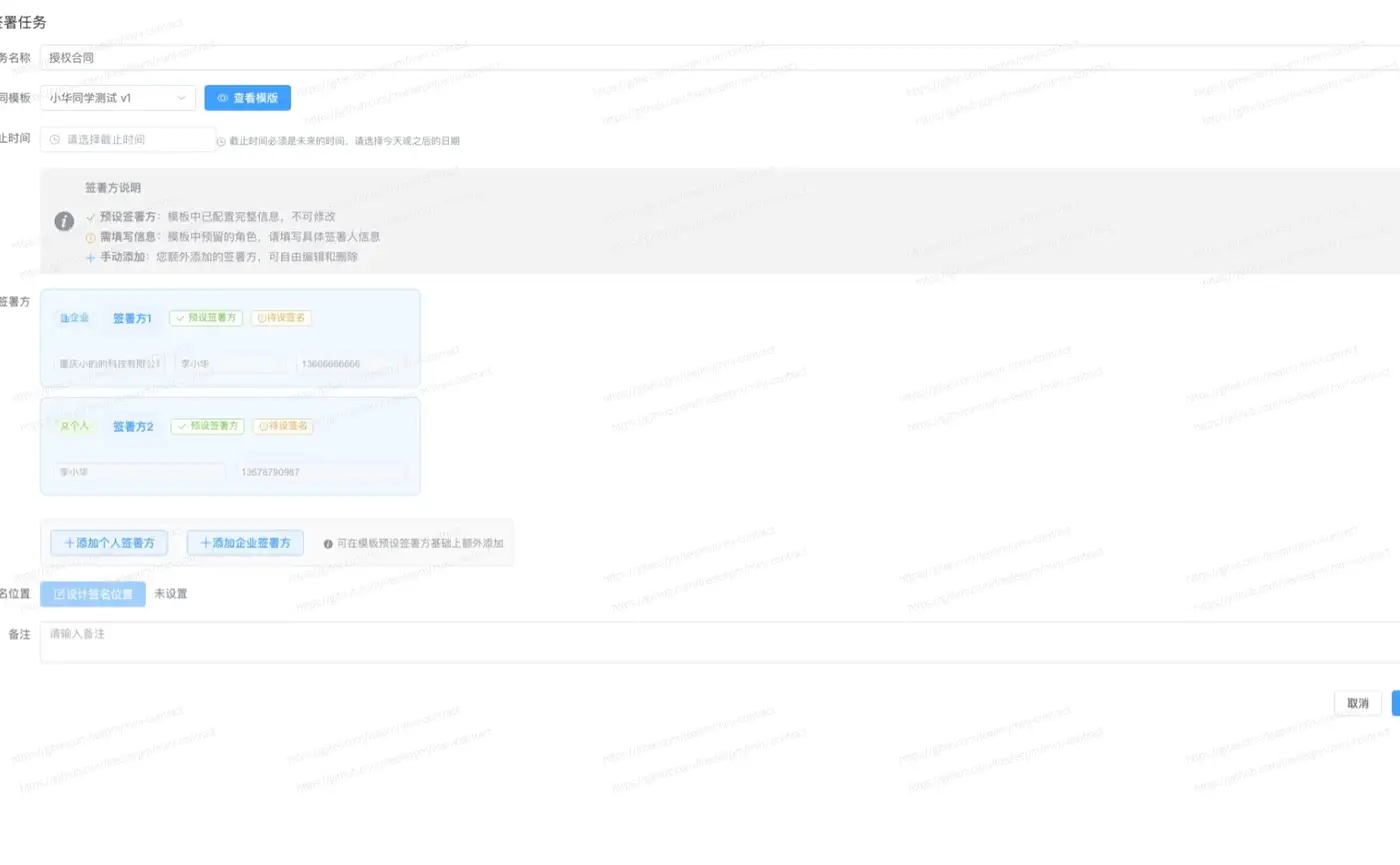 返工最多的原因通常只有一句:“章盖错了。”所以我在 v3.1.0 直接把能力前置:创建合同时支持提前预设印章落章位置。