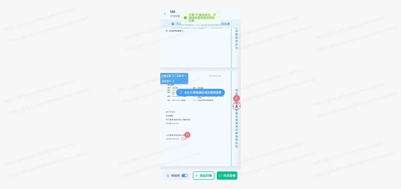 所以我做了 Mini Contract.Pro。 这是我自己的产品,也是我用真实项目标准打磨出来的一套电子签开源底座:把电子签最难的那一段(印章 + 签署 + 落章 + 存证)一次性跑通,并且做成可复用、可二开、可私有化部署的工程化能力。 目前已服务了300+真实客户。