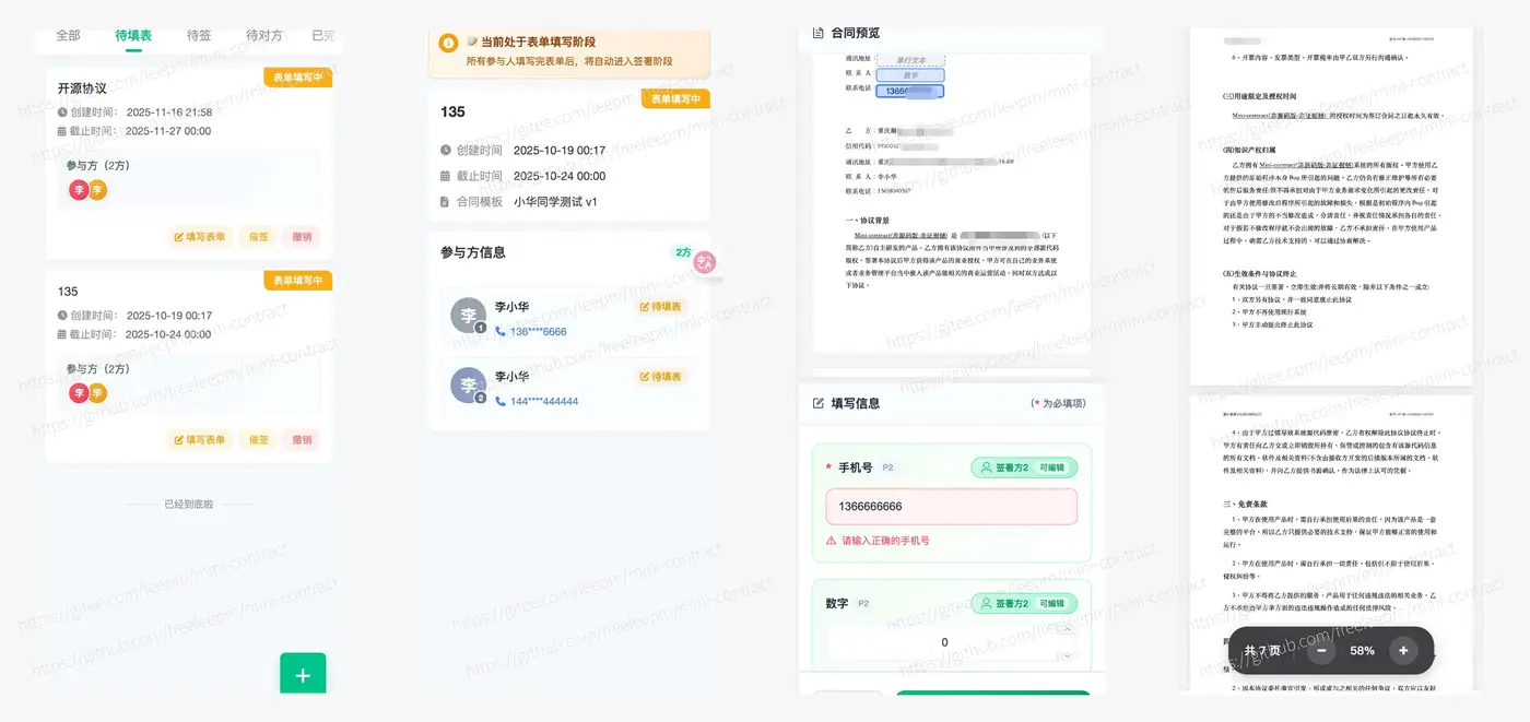 Mini Contract.Pro 的目标,就是把这些最难的部分变成“可复用的底座”。 如果你也在做签署能力、合同中台、企业用章、司法级存证、多端签署入口——希望这套项目能让你少走弯路,直接把难点一次性打穿。