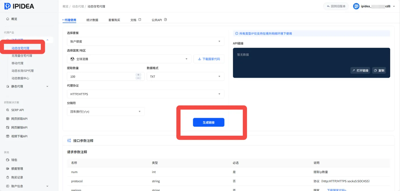 在IPIDEA主页找到网页抓取API: