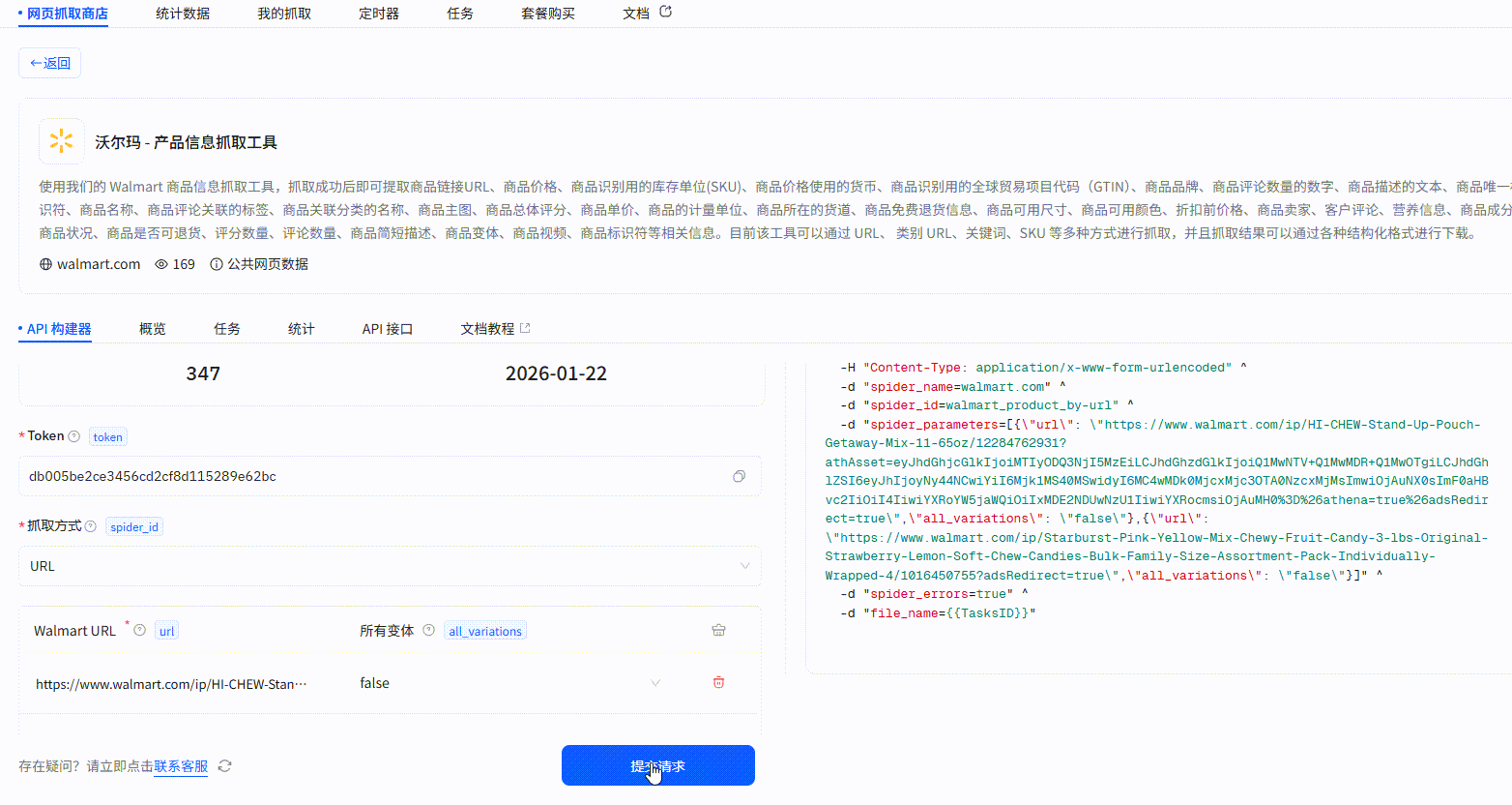 点击提交请求,这样就一键创建好一个爬虫任务: