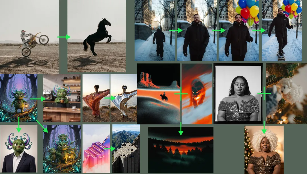 - 多参考生成:结合多张输入图像,混合概念并生成复杂组合
