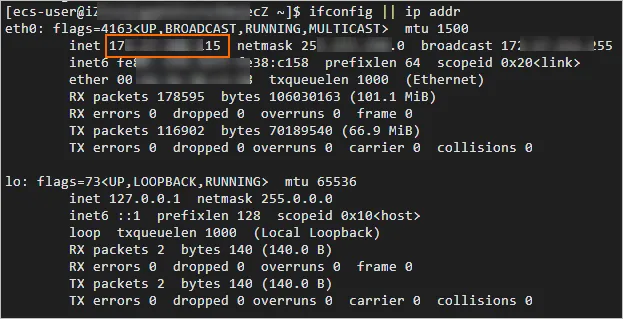 - 在测试机上执行以下命令,查询测试机的私网IP地址。