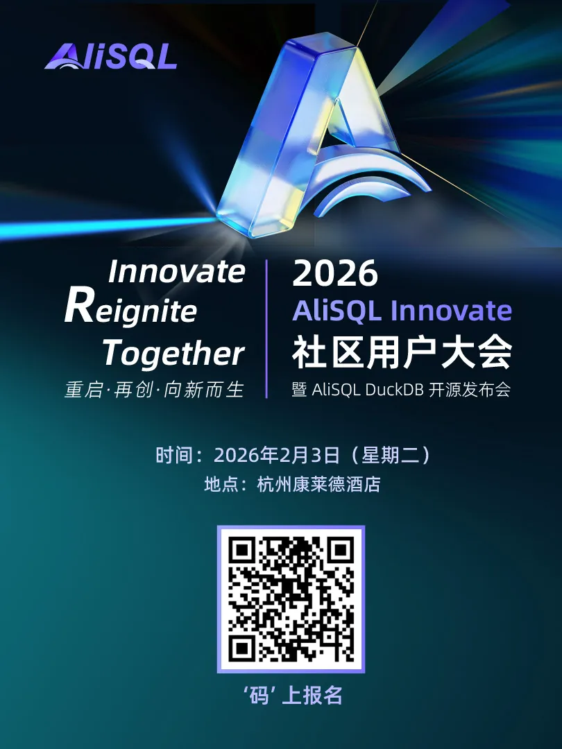国内首场《2026 AliSQL Innovate 用户大会暨 AliSQL DuckDB 开源发布会》将于2月3日在杭州开启!