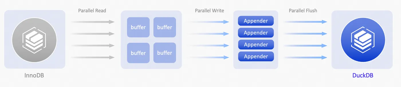 - 嵌入式设计:DuckDB是一个嵌入式的数据库系统,天然的适合被集成到MySQL中。