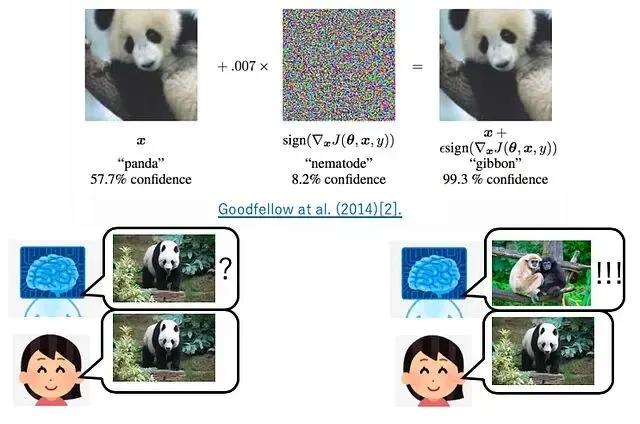 这里存在一个悖论:模型可以正确识别成千上万张图片,但只要加上一点经过数学优化的噪声(像素值变化不到1%),它就会完全判断失误。