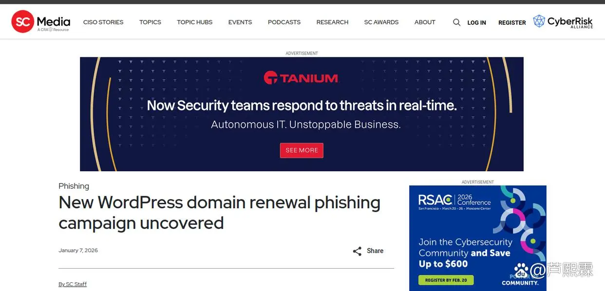 针对WordPress管理员的域名续费钓鱼攻击,体现了网络犯罪从广撒网向精准打击的转变趋势。其成功不仅依赖前端仿真的逼真度,更在于对用户操作习惯与心理弱点的深度利用。本文通过解构攻击全链路,指出单纯依赖用户警觉性已不足以应对当前威胁。有效的防护必须融合技术自动化(如浏览器拦截、异常检测)与流程制度化(如自动续费、权限分离)。未来,随着无密码认证(如Passkey)和去中心化身份(DID)的普及,传统基于短信OTP的验证模式有望被替代,从而从根本上消除此类钓鱼的攻击面。但在过渡期内,强化上下文感知的安全工具与针对性的用户教育仍是降低风险的关键路径。