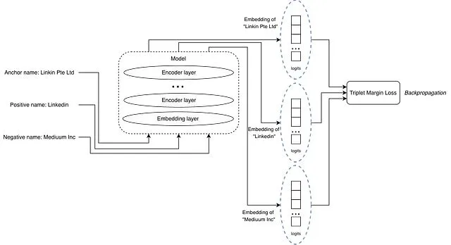 输入变成三个文本:一个锚文本、一个正匹配、一个负匹配。
