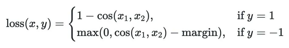 损失函数用的是余弦嵌入损失,x 和 y 分别是文本对的嵌入向量。