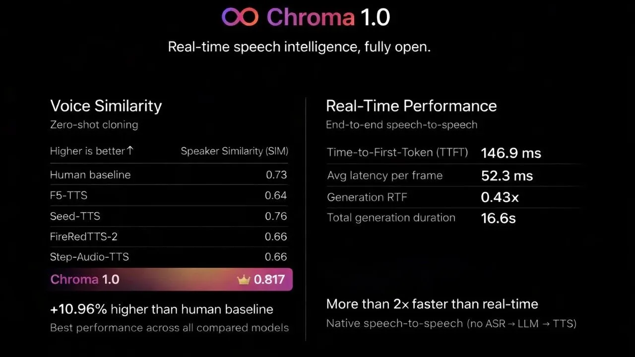 Chroma 1.0 的发布,标志着实时语音 AI 正式进入“开源 + 端到端 + 低延迟”的新阶段。