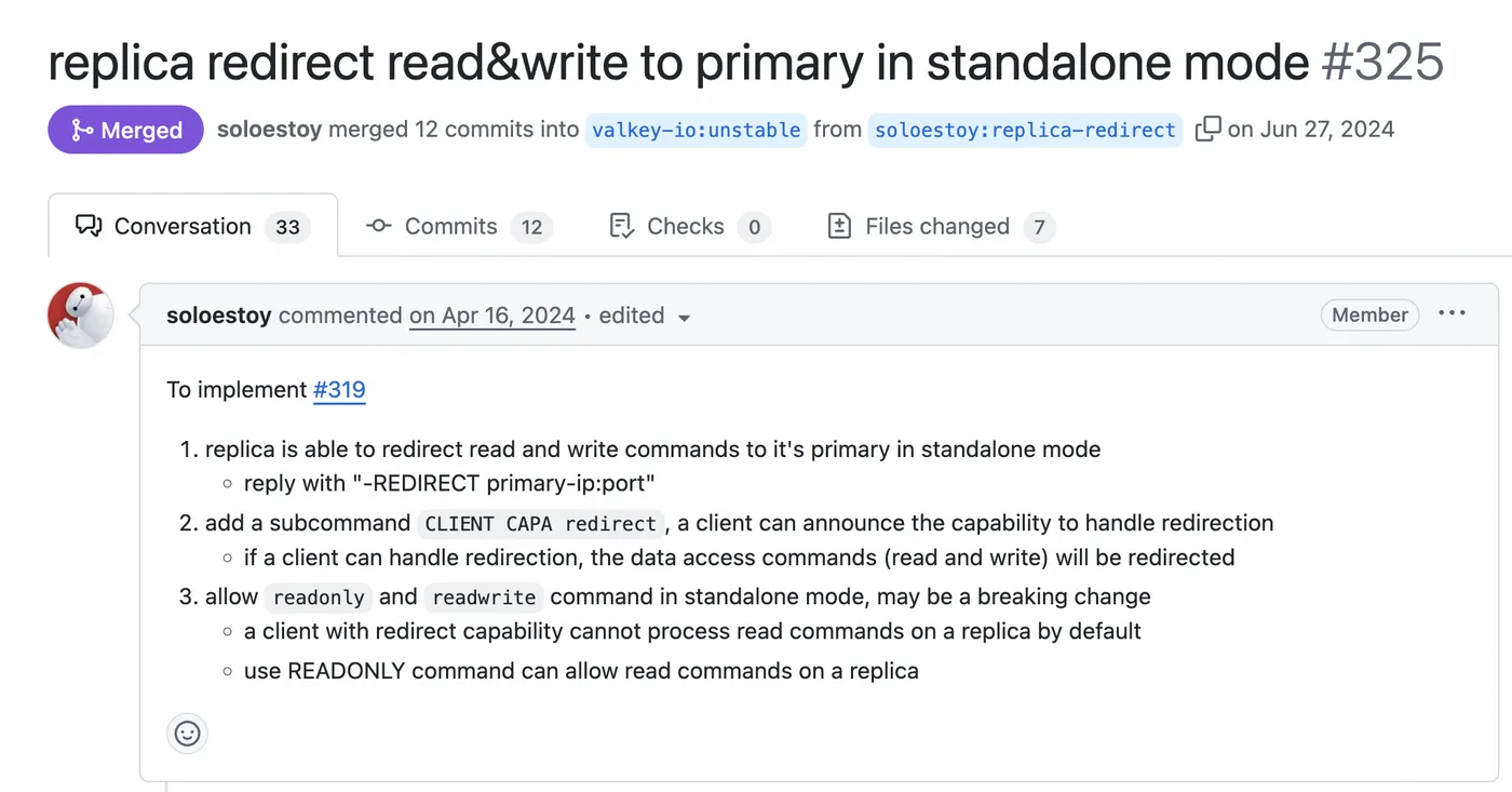 内核层面主从无感协议的支持[1]最开始提交在了 Redis® 社区、经过超过百次的交流,也经历了 Redis® 社区的闭源、最终在新的 Valkey 社区被合并接受[2],在整个讨论过程中,遇到的主要问题是: