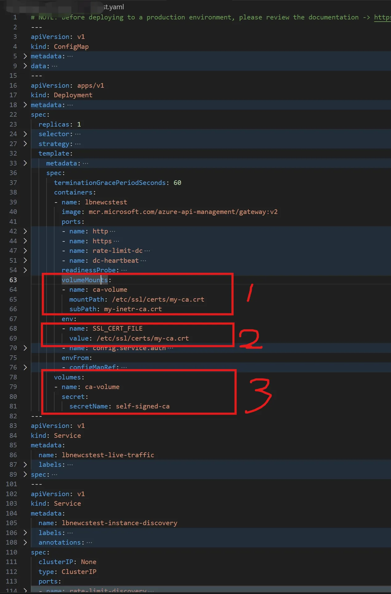 把从APIM获取的部署yaml内容,只修改如图中的三个位置,即可。