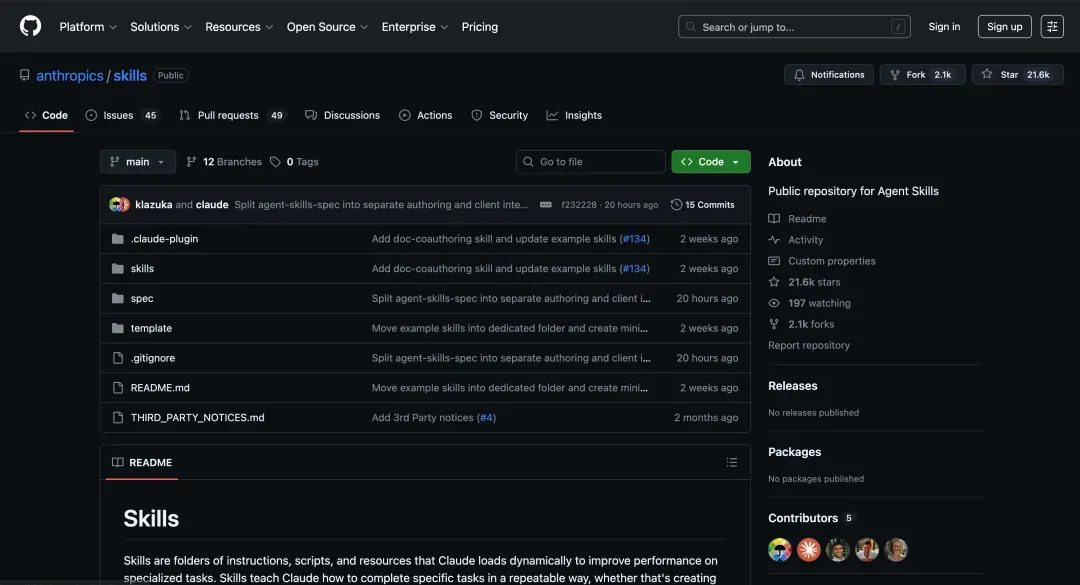 有些人知道官方给出了一个 skills 开源仓库,里面有很多 skill 示例。
