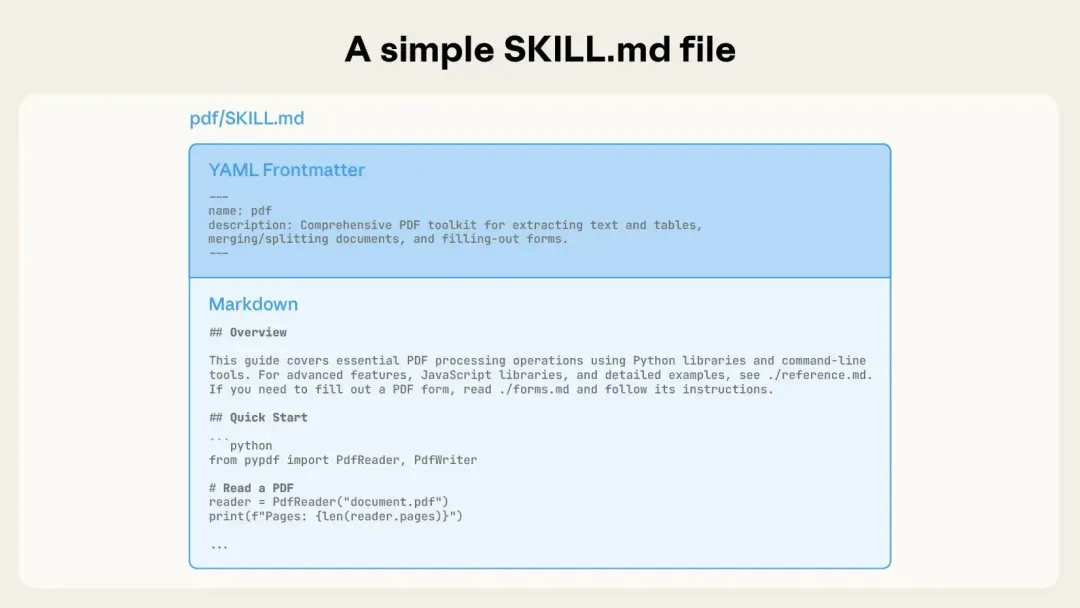 详情参见:https://www.anthropic.com/engineering/equipping-agents-for-the-real-world-with-agent-skills