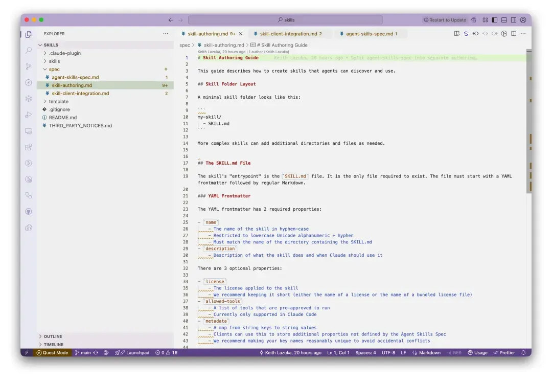 这里面不仅有 Skill 的例子,而且还有非常详细的规约。不过都是英文的。