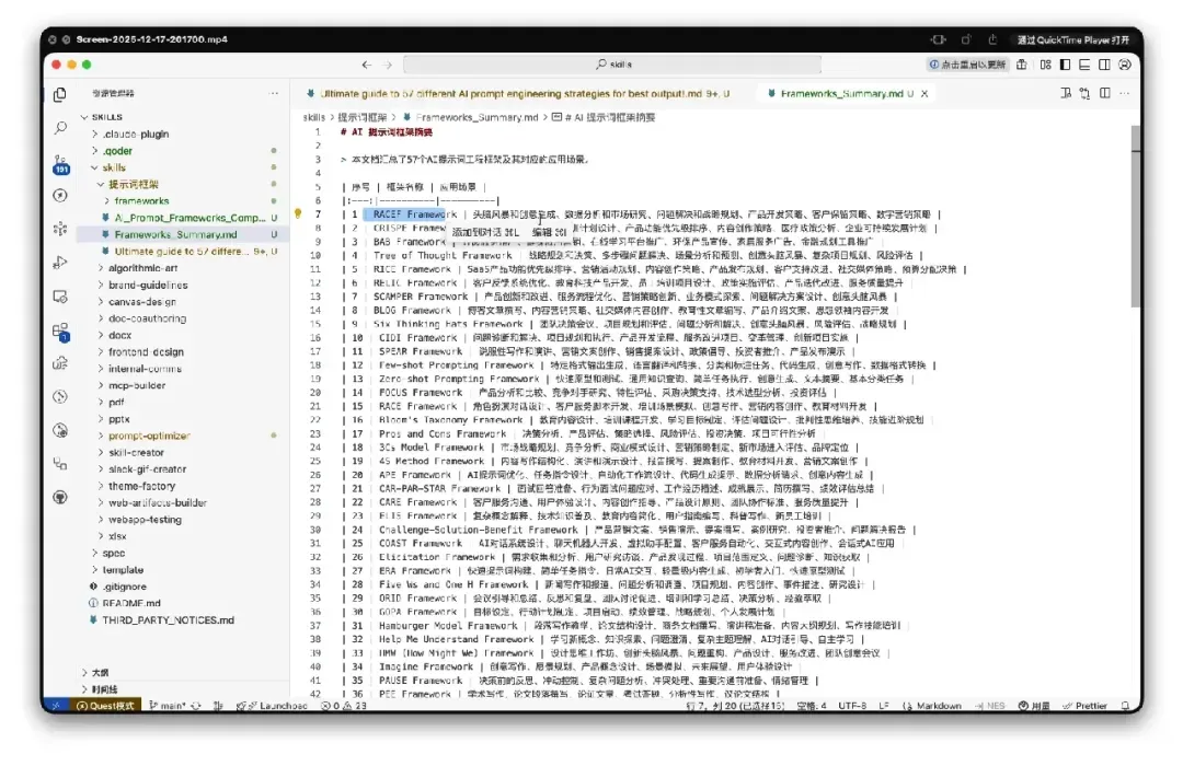 注:原本的“提示词框架”文件夹其实已经被修改为“prompt-optimizer” skill,只是为了让大家理解所以重新 Copy 进来。