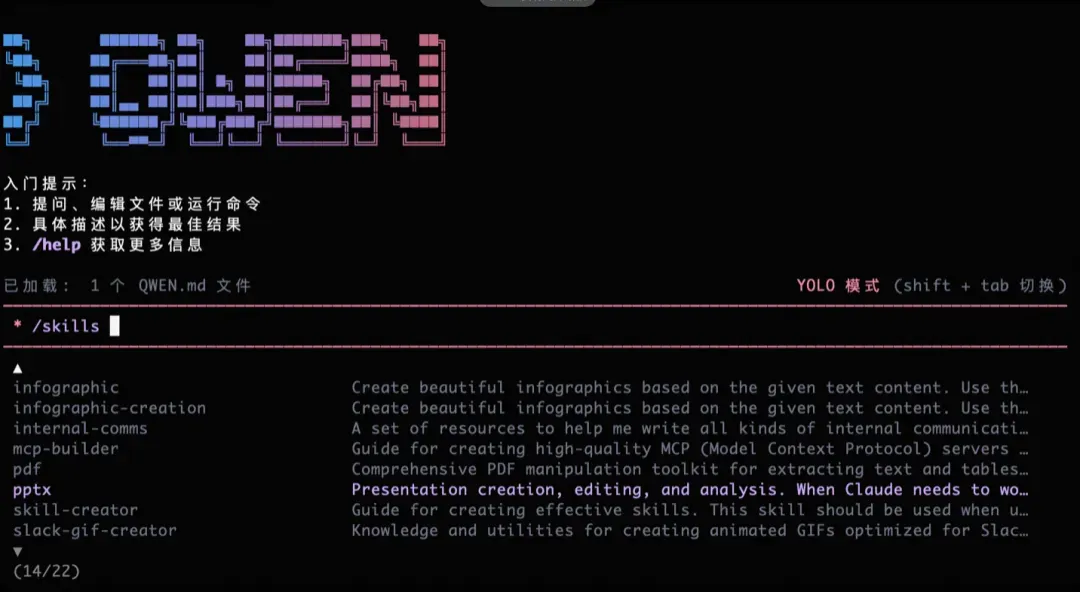 参见:https://qwenlm.github.io/qwen-code-docs/zh/users/features/skills/也已经支持 Skills。