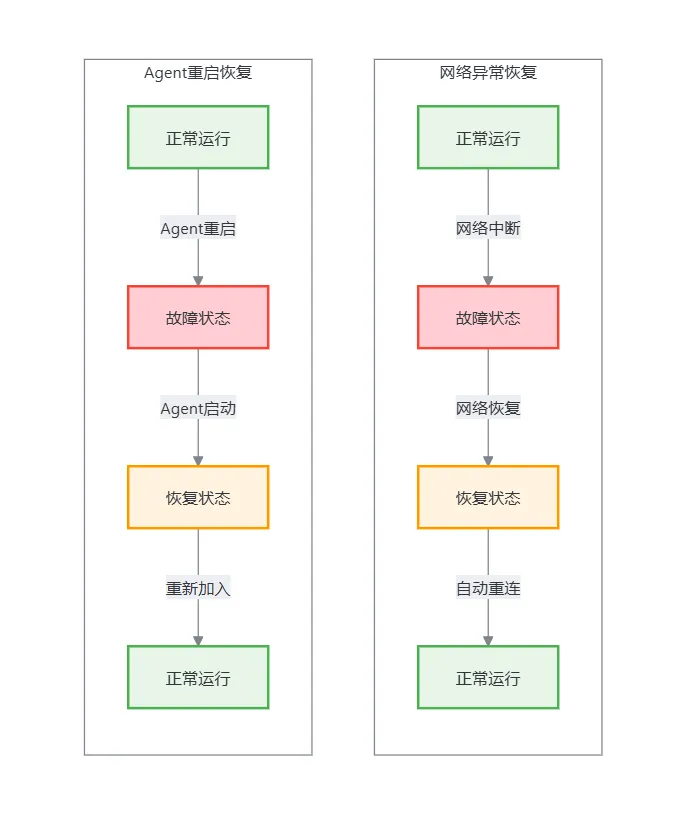 验证系统在常见网络波动和 Agent 重启场景下的恢复能力。