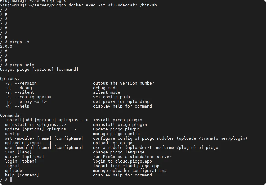 镜像构建完成后,我已将其上传至阿里云镜像仓库。你也可以直接使用该镜像:registry.cn-hangzhou.aliyuncs.com/xjpublic/picgo:2.0.0