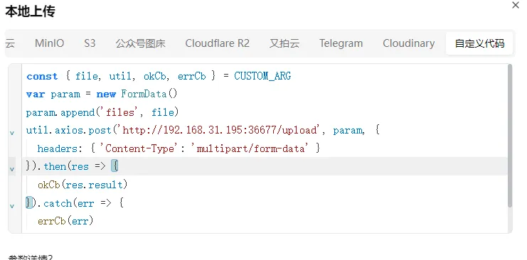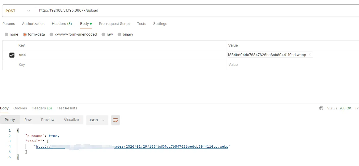 现在,你就可以在 Postman 或其他第三方工具中,通过配置 PicGo 服务地址来使用图床功能了。