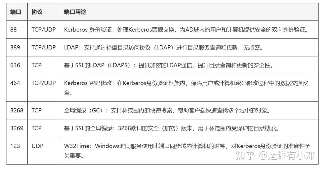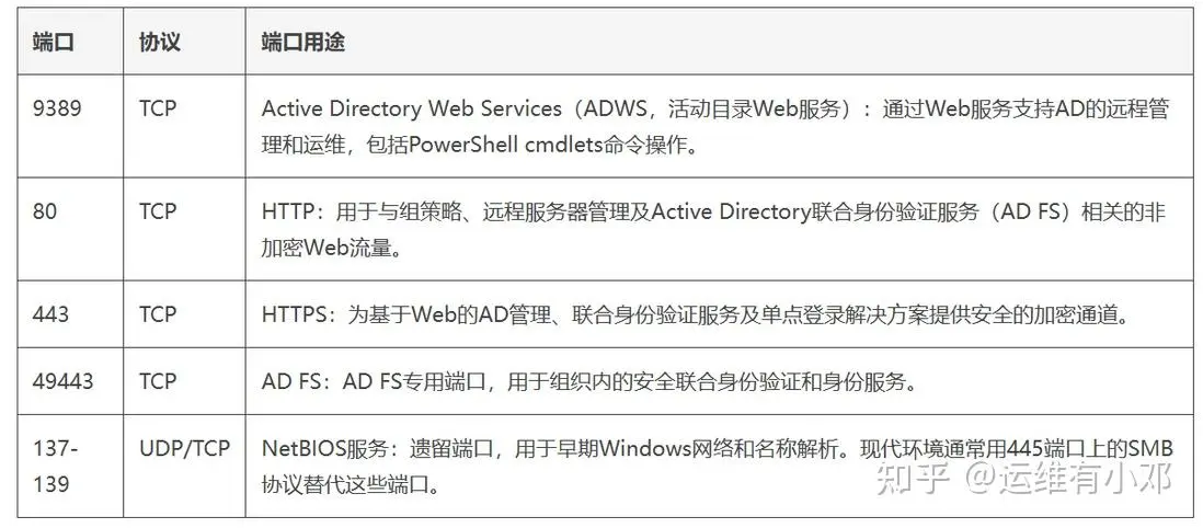 这些端口支持AD的管理、远程运维、功能扩展以及遗留系统或基于Web的访问。