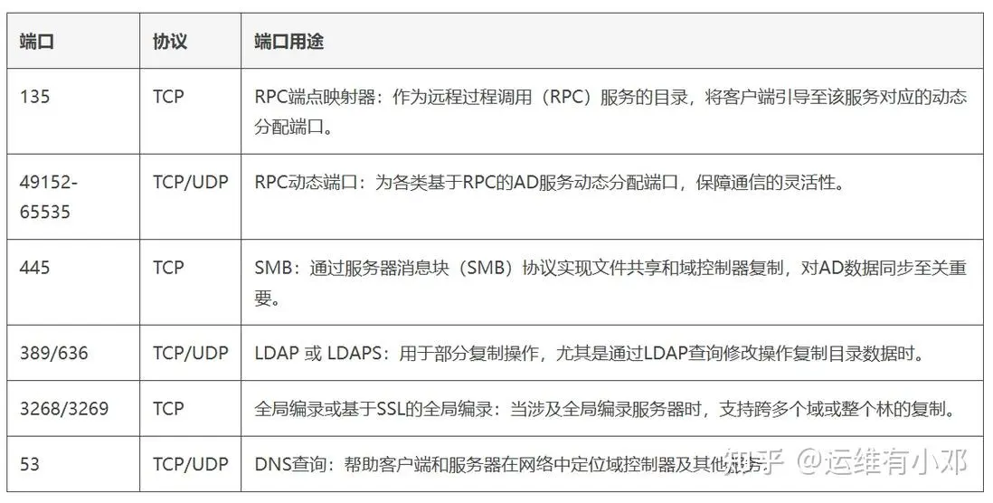 这些端口是AD域控制器同步数据、保障全网目录信息一致性的必需端口。
