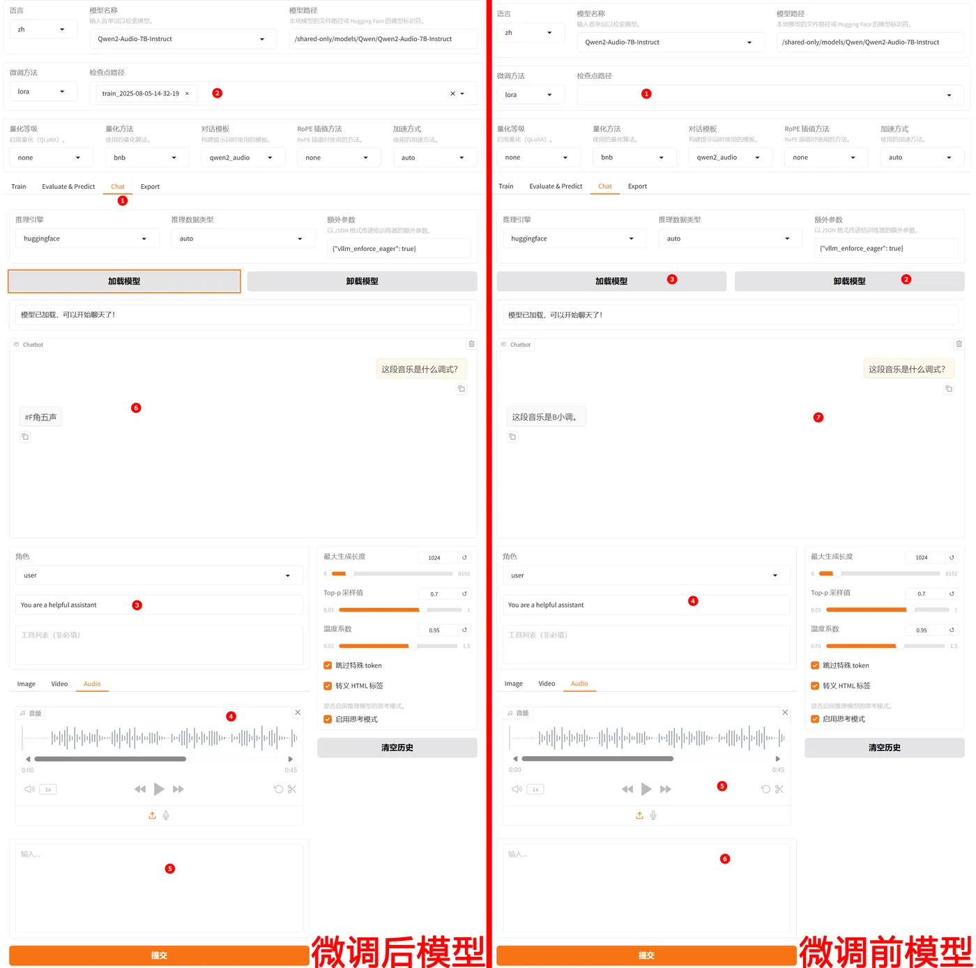 为此,我们基于 Qwen2-Audio-7B-Instruct 模型,通过领域适配性微调,构建了一套能够深度理解传统音乐语义的智能系统。该系统不仅融合了五声音阶(宫、商、角、徵、羽) 的声学特征,更在文化语境与情感表达层面实现了突破,让技术真正服务于文化的传承与创新。