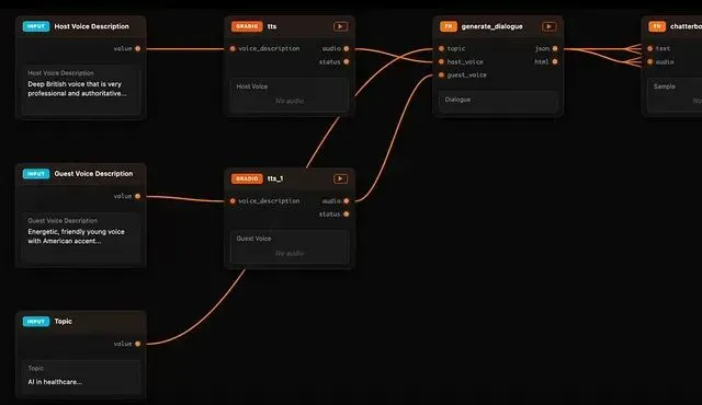 每个节点代表一次计算操作,可以是 Gradio Space API 调用、Hugging Face 推理请求,或普通的 Python 函数。节点通过输入端口和输出端口定义接口,数据沿着端口之间的连接流动。