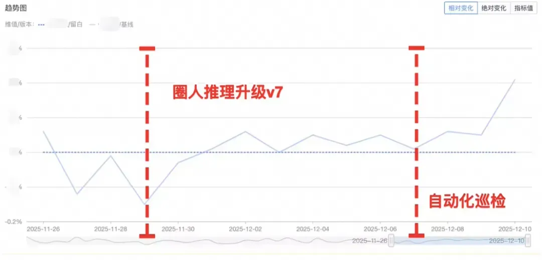 2.打包留白实验关键指标从每日负向,扭转为稳定正向趋势