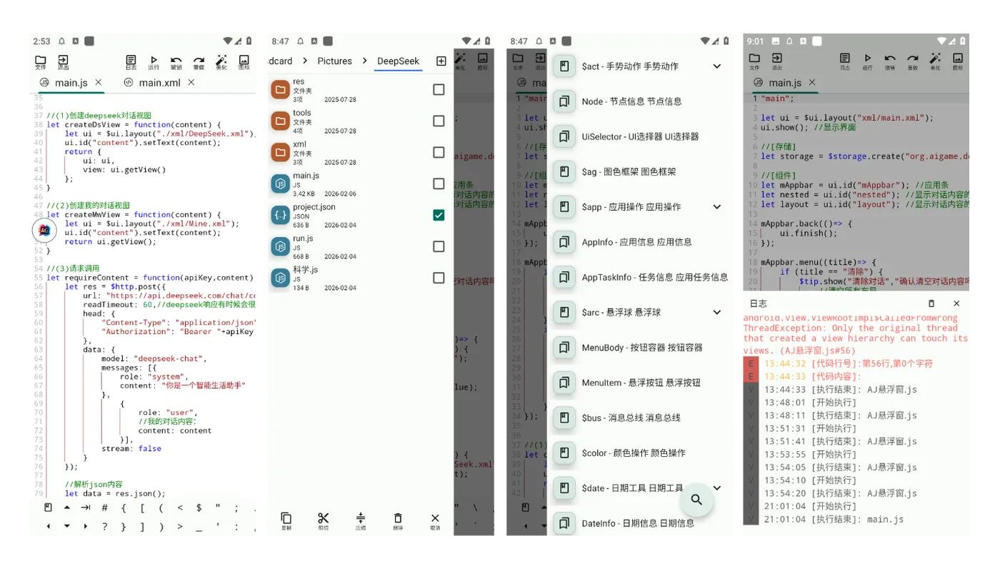 由于我觉得Auto.js用起来很顺手,于是我想保留我自己的使用习惯来开发AIGamePro!!